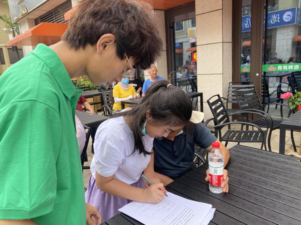 到达考察地点后,实践队员们立即行动,按计划分组进行调查。活动中队员们穿梭于度假村的渔家之中,将自己手中的问卷传递到一个又一个的游客手里,用自己的耐心、细心为不同的游客讲解“什么是水足迹?”“为什么要珍惜水资源?”等一系列问题,游客们也对水资源的保护和利用问题表示关心,并更加深入的了解了“水足迹”的相关知识。同时,队员们走进渔家,在表明来意后,询问了渔家负责人有关“每天的用水量大概是多少”,“每天需要多少斤的蔬菜”,“日人流量大概有多少”等问题,负责人们也进行了热情耐心的解答。之后,队员们向渔家的负责人宣传并讲解了此次实践活动的目的和意义,呼吁商家们重视水资源的利用和保护问题,学习“水足迹”的有关知识,提高节水意识。活动期间,负责拍照的队员及时地用相机记录下实践过程,以便活动后进行总结和反思。烈日炎炎之下实践队员们热情高涨,干劲十足,丝毫不觉疲惫。活动结束后,大家一起反思了此次调查工作中的不足,总结并分析了调查所获得的有关信息,并一同商讨了接下来的实践方案。一天下来,大家收获颇丰。
