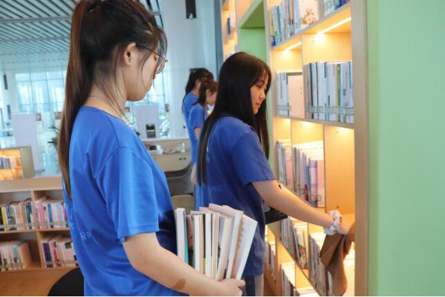 “一个民族需要有民族精神,一个城市同样需要有城市精神。”城市是一个民族文化和情感记忆的载体,在飞速发展的时代,更要结合历史,区域文化,时代要求,打造属于自己的城市精神,落实城市的精神内核,建设以城市书屋为代表的心灵栖息地就显得尤为重要。为探索城市书屋对日照市当地产生的社会影响,实践队员特前往城市书屋山海天游客服务中心馆帮助工作人员开展服务工作,进行实地考察并清理打扫书架和书籍。在整理过程中,队员们感受到书香的魅力,体会到城市书房对城市发展的重要性,感受到阅读对人们心灵的净化的巨大作用。