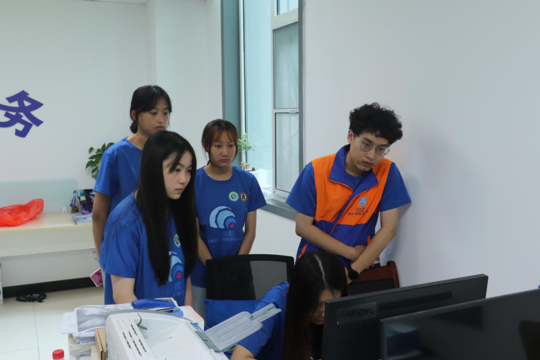 实践队员先对科室的工作进行初步了解,很快便进入工作状态。实践队员被分成两组,一组协助工作人员进行材料打印工作,但由于打印机临时出现故障,科长立马拨打电话,寻找工作人员维修,并说道“来三个人跟我一起去别的科室搬运材料。”实践队员面对突发状况临危不乱,调整好状态,很好的帮助工作人员解决问题。