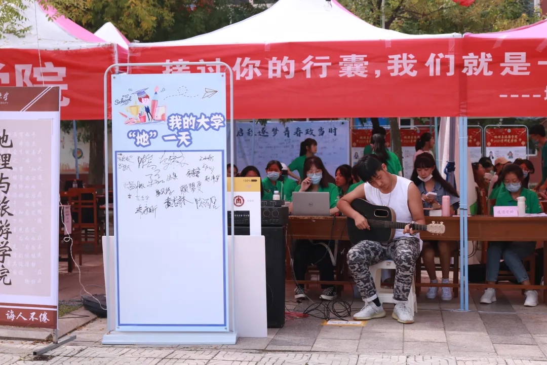 报到大本营处实时与新生和迎新工作人员交流,详细询问迎新工作进展,勉励大家要起到学生会的带头作用,展示出地理学子的良好精神风貌。他希望2021级新生明确目标、好好规划大学生活,严格要求自己,培养各方面的能力,能够在当今世界大变局中找到自我拼搏的方向,努力成为能够担当中华民族伟大复兴大任的新时代青年。