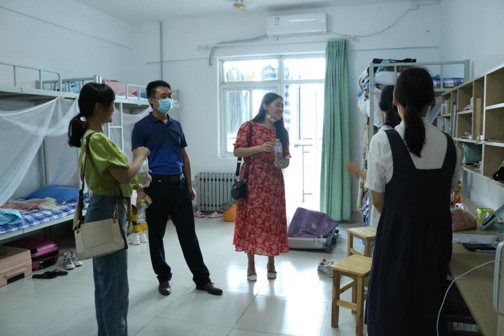 党委副书记刘伟、2020级辅导员张乃宁、2021级辅导员董青深入新生宿舍,走访慰问2021级研究生和本科生,与新生亲切交谈。