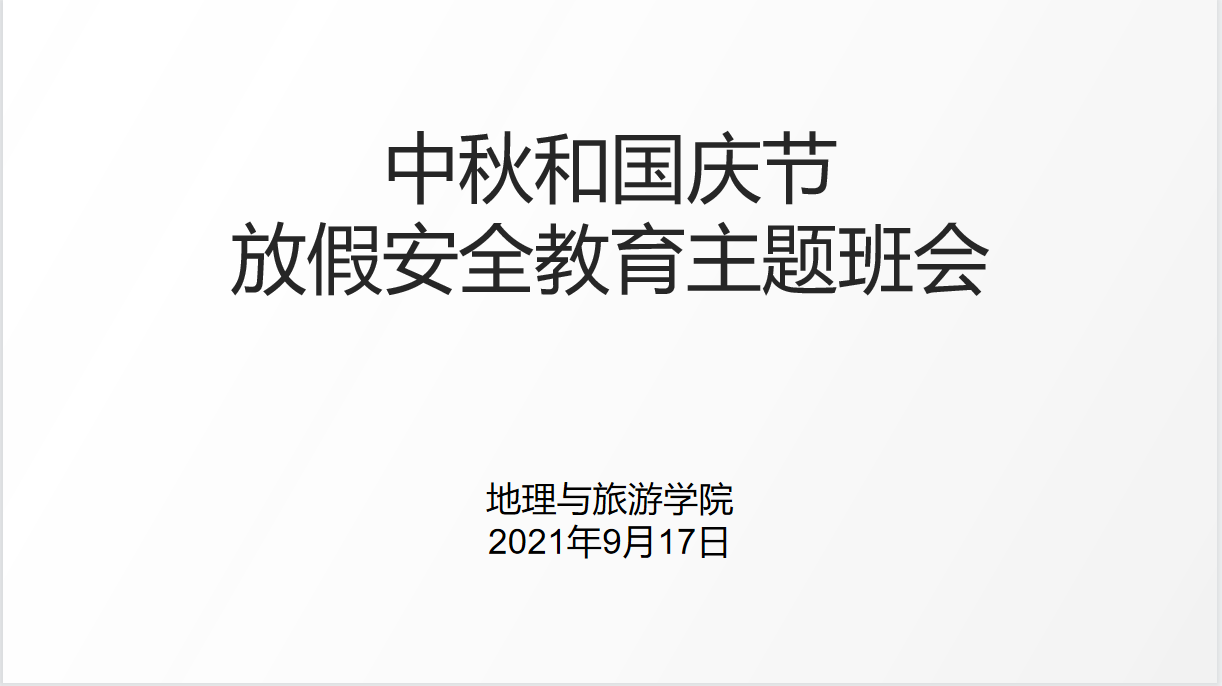 各班线上、线下相结合,召开“中秋及国庆节放假安全教育”主题班会。班会会议由各年级辅导员主持。
