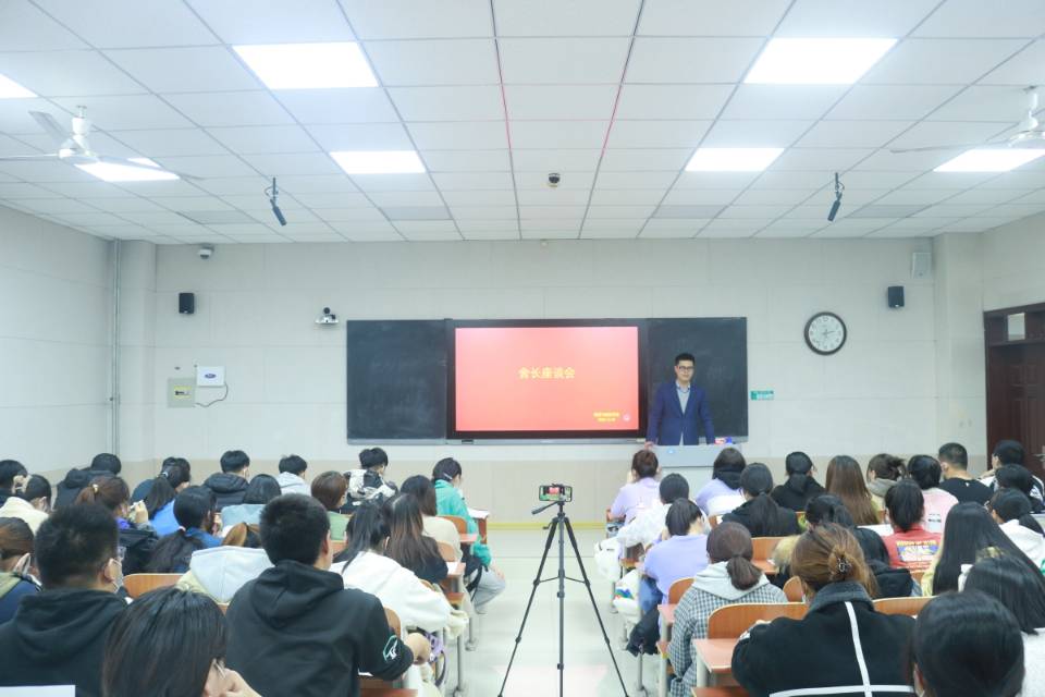 于s207召开舍长座谈会。本次座谈会由2018级辅导员田青主持,各宿舍舍长参加。