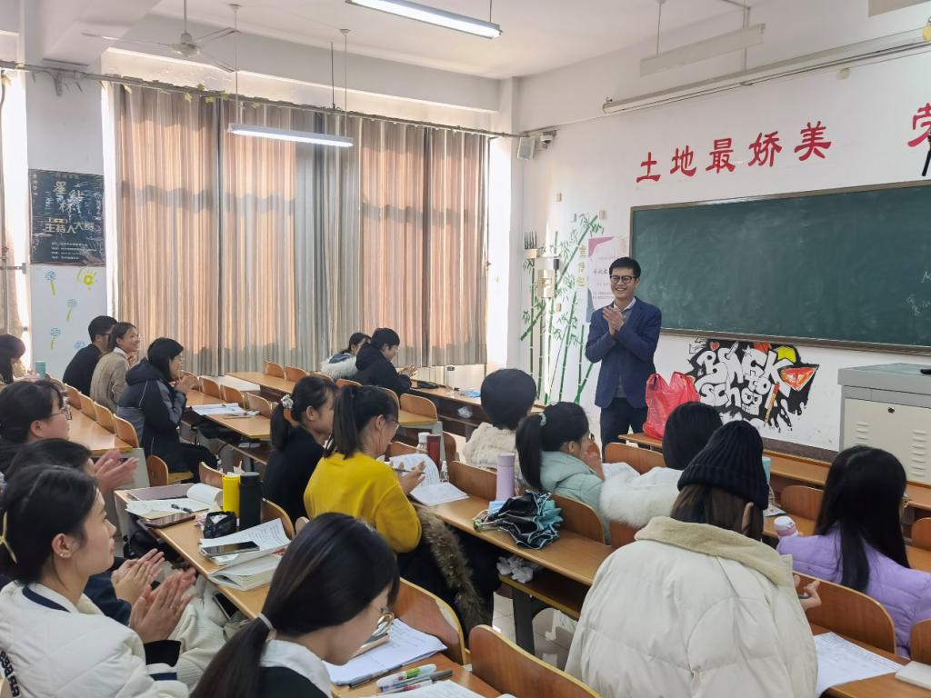 2018级辅导员田青老师来到考研教室,为2018级考研学子送去温暖与祝福。