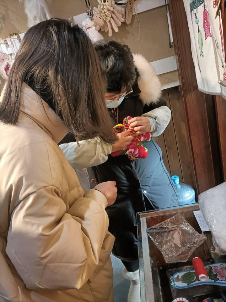 为了解和体验非物质文化遗产的魅力,深入践行“两创”方针,2021年1月8日上午,非遗探查小队来到东夷小镇割花“非遗工坊”进行参观体验。