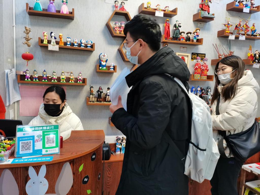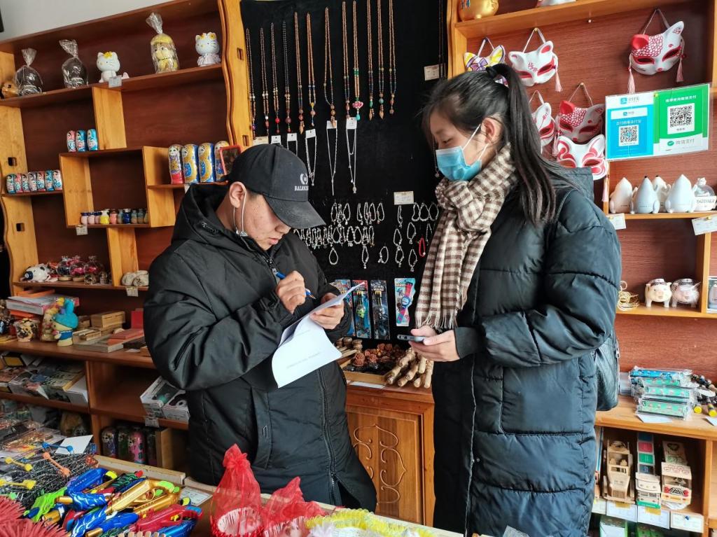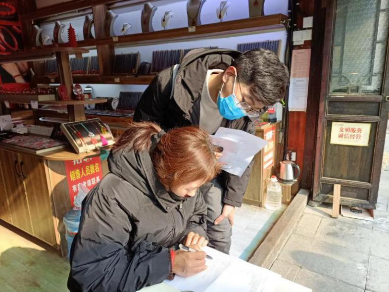 图为商铺老板填写调查问卷