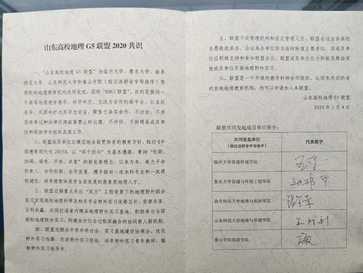 5所高校的地理教育机构共同发起,简称“SDG5联盟”,目的是提供一个山东省高等地理教育教学、科学研究、交流与合作的新平台。