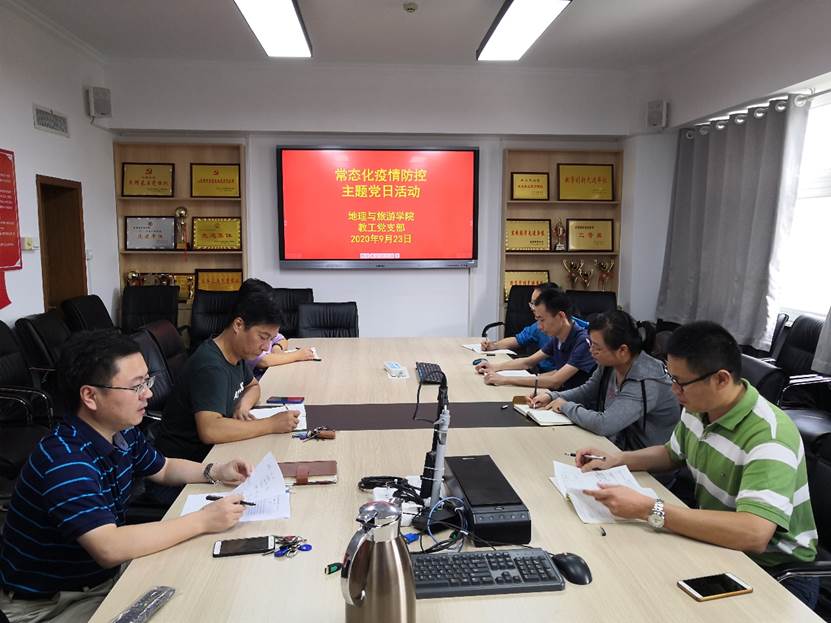教工党支部在2401会议室开展“常态化疫情防控”主题党日活动,教工党支部全体支委进行讨论交流。