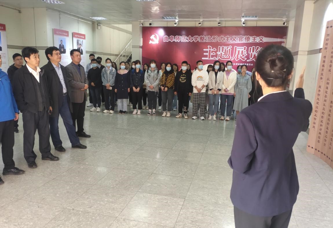 党委书记苏占兵、院长张全景带领领导班子成员、各教研室主任、全体辅导员、学生党员到曲阜师范大学美术馆参观学校“整治形式主义官僚主义主题展览”。