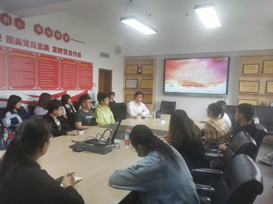 党委书记苏占兵在会馆2401会议室为所联系班级2019级旅游管理班全体同学作了“疫情如何深刻影响国际关系格局”的形势政策报告。