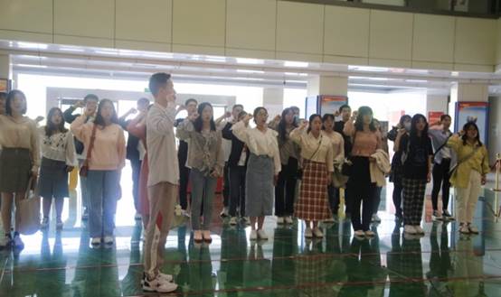 参观活动结束后,全体党员面对党旗高举右拳,重温入党誓词,宣誓的声音铿锵有力,激动人心,深切表达了对党的忠诚。