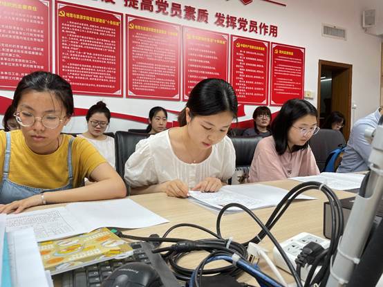 会上,党员发展对象高思齐、李婉婷、屈毅、吴天晓、辛宗斐、仲昭燕依次宣读入党志愿书并向党组织汇报党课学习、工作、生活情况及思想动态,表明自己的入党动机。入党介绍人孙德健、孙进、马振秀、张宇航、张园园、王一山、崔硕分别介绍了六位同志的培养过程和现实表现,党内其他同志分别对其同志的基本情况发表意见。孙德健代表研究生党支部委员会向大会汇报了高思齐等人的综合政审情况。