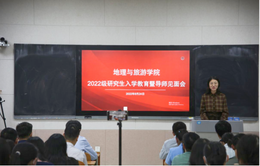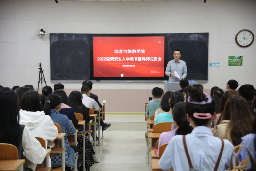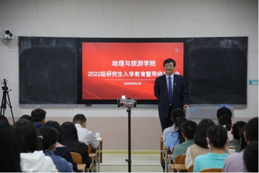 基本概况、专业划分、课程学习、论文写作等重要内容,并对同学们未来的学习生活提出要求。他指出,全体研究生在学期间一定要明确学习目标,做好研究规划,培养从事实际工作的能力,并为进一步的学术研究打好基础。他强调,全体研究生要树立自学意识、能力意识、创新意识、纪律意识及科学的情感、态度、价值观,端正学习态度,培养创新思维,自觉锻炼科研能力。他希望每位同学都能够成长为具有君子风范、家国情怀、乐学精神的优秀地理学者和地理教育工作者。