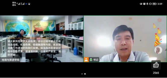 党委书记苏占兵在空间规划实验室通过QQ视频为2022级新生上开学思政课。党委副书记刘伟主持,2022级全体新生参加。