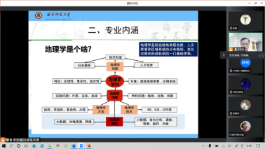 地理科学专业的基本情况,并从社会需求的角度剖析了地理科学专业的发展前景。随后,李老师指出了地理科学专业常见的认知误区,引导学生树立正确的学科观,并指引学生使用正确的方法进行专业学习。最后,李老师勉励同学们要志存高远、脚踏实地,努力成为有家国情怀、有全球视野、有专业本领的复合型人才,为国家经济社会发展贡献地理学智慧。