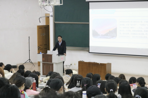 于E101室举行中学班级管理工作优秀经验分享报告会。本次报告会特邀日照市海曲高级中学教务处主任、名优班主任工作室负责人、山东省优秀班主任、日照市教书育人楷模秦方老师主讲。副院长于伟主持本次报告会,地理科学系副主任周维国,地理教学论授课教师李剑、刘庆果出席报告会,2020级地理科学(师范)和公费师范生全体学生参加。