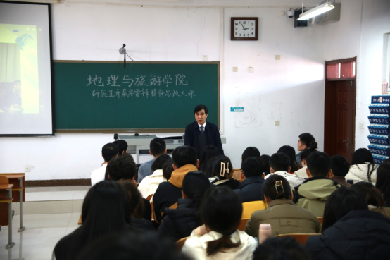 党委书记苏占兵、辅导员赵岩带领全体研究生共同学习。