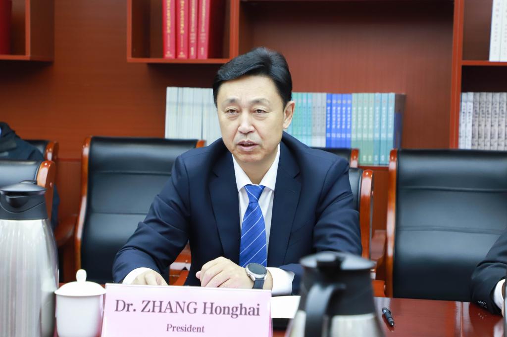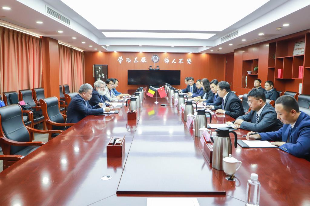 张洪海校长对根特大学代表团来访表示欢迎,介绍了曲阜师范大学的办学特色及学科优势,希望两校在巩固现有合作的基础上,进一步深化交流与合作,加强在人才培养、科学研究以及平台建设等方面的交流借鉴。