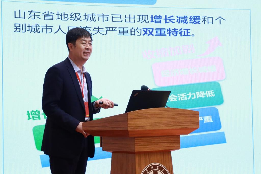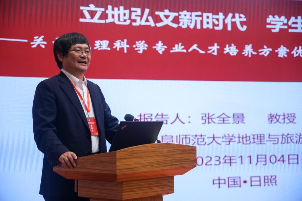 院长张全景教授,分别做了“地理学创新与社会价值”“从国土空间优化与治理视角构建碳中和国土空间格局”“中世纪暖期-小冰期浅埋废弃黄河三角洲地貌与环境研究”“高质量发展背景下山东城市收缩现象研究”“立地弘文新时代 学生中心求大成——关于地理科学专业人才培养方案优化与模式创新的实践与思考”大会主旨报告。